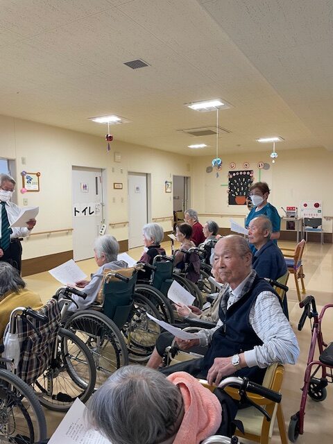 利用者のみなさんと一緒に歌ったり、歌いながら身体を動かしたりと楽しい時間をプレゼントしていただきました😊
