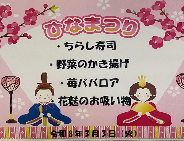 少しづつ春の訪れを感じられるようになりました🌸 本日は桃の節句…もえぎ野ではあちらこちらに可愛らしいお雛様たちがみられます😊 ひな祭りならではの昼食をいただきながら、たのしい思い出をお話しいただけますように…🍑